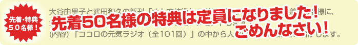 | 大谷さんの話を東京で聞きたいと思い講演・講座の情報を探しているのですがなかなか見つかりません。 『元気をつくる吉本流コーチング』『あなたを幸せにする魔法の質問』を読んで元気をもらい、 自分の棚卸をしています。あとがきにある「自分の人生を愛してください」の言葉を今、素直な気持ちで 受け止めています。大谷さんの元気に出会いたい。(二階堂 仁さん) |